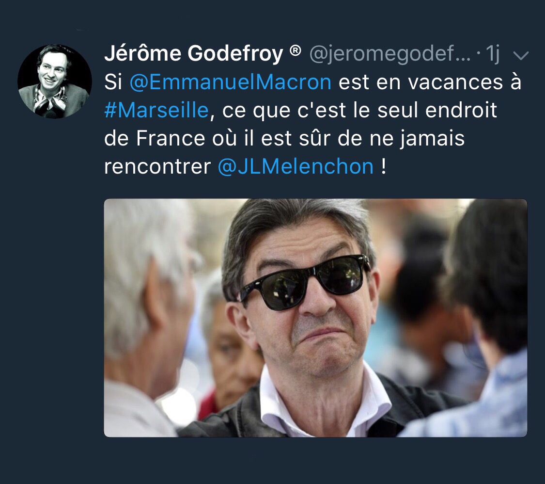 15 août 2017 par Pascal Sevez Mélenchon, Macron, Marseille Vu sur Twitter 😎 Partager Cliquer pour partager sur X(ouvre dans une nouvelle fenêtre) X Cliquez pour partager sur Facebook(ouvre dans une nouvelle fenêtre) Facebook Cliquez pour partager sur LinkedIn(ouvre dans une nouvelle fenêtre) LinkedIn Cliquez pour partager sur Pinterest(ouvre dans une nouvelle fenêtre) Pinterest J’aime chargement…