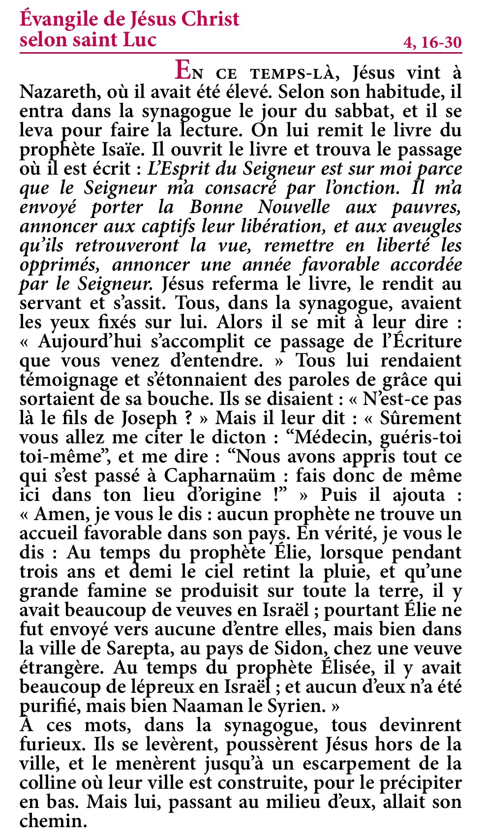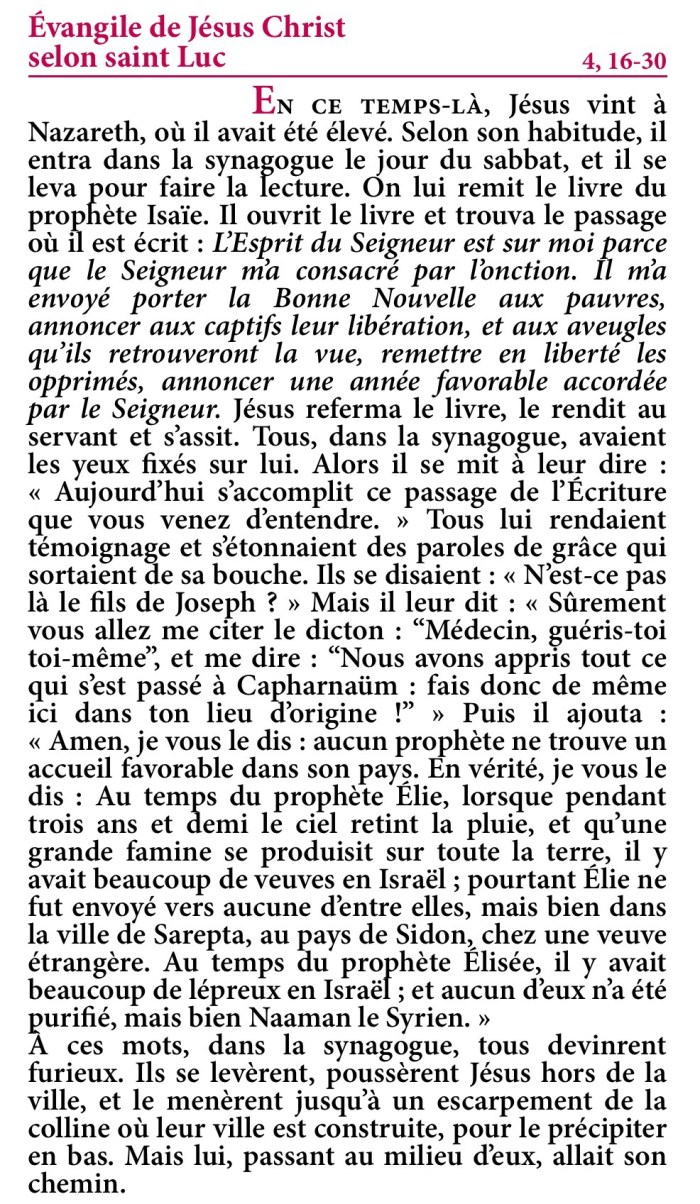 Évangile de Jésus-Christ selon saint Luc 4,16-30.