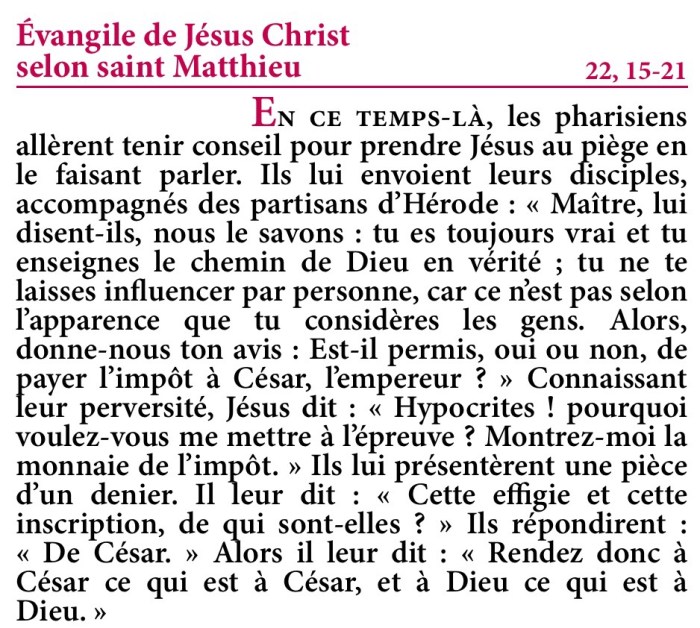 Évangile de Jésus-Christ selon saint Matthieu 22,15-21.