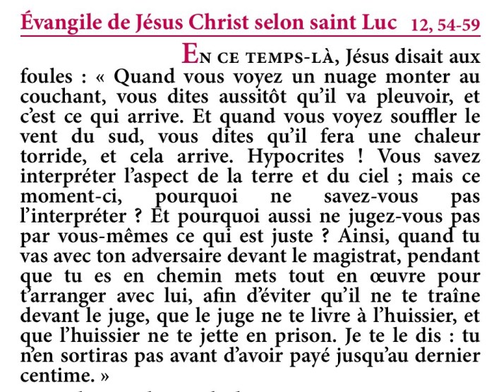 Évangile de Jésus-Christ selon saint Luc 12,54-59.