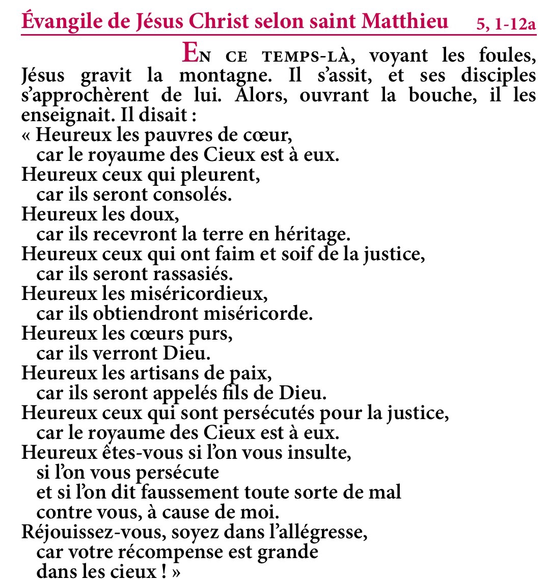 Evangile de la Solennité de la Toussaint – Extrait de la Traduction Liturgique de la Bible – © AELF, Paris