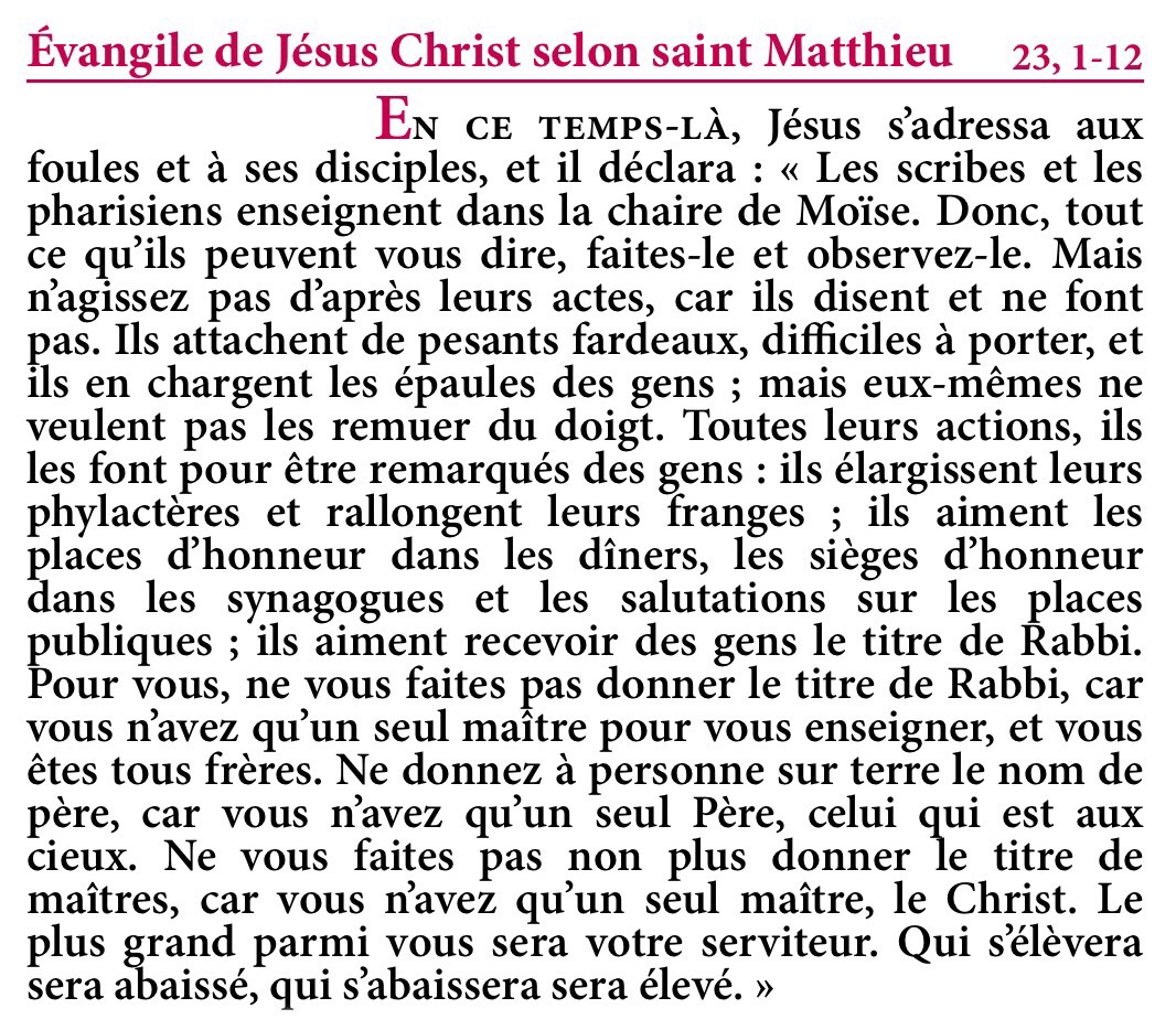 Évangile de Jésus-Christ selon saint Matthieu 23,1-12.