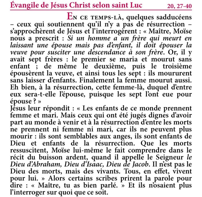Évangile de Jésus-Christ selon saint Luc 20,27-40.