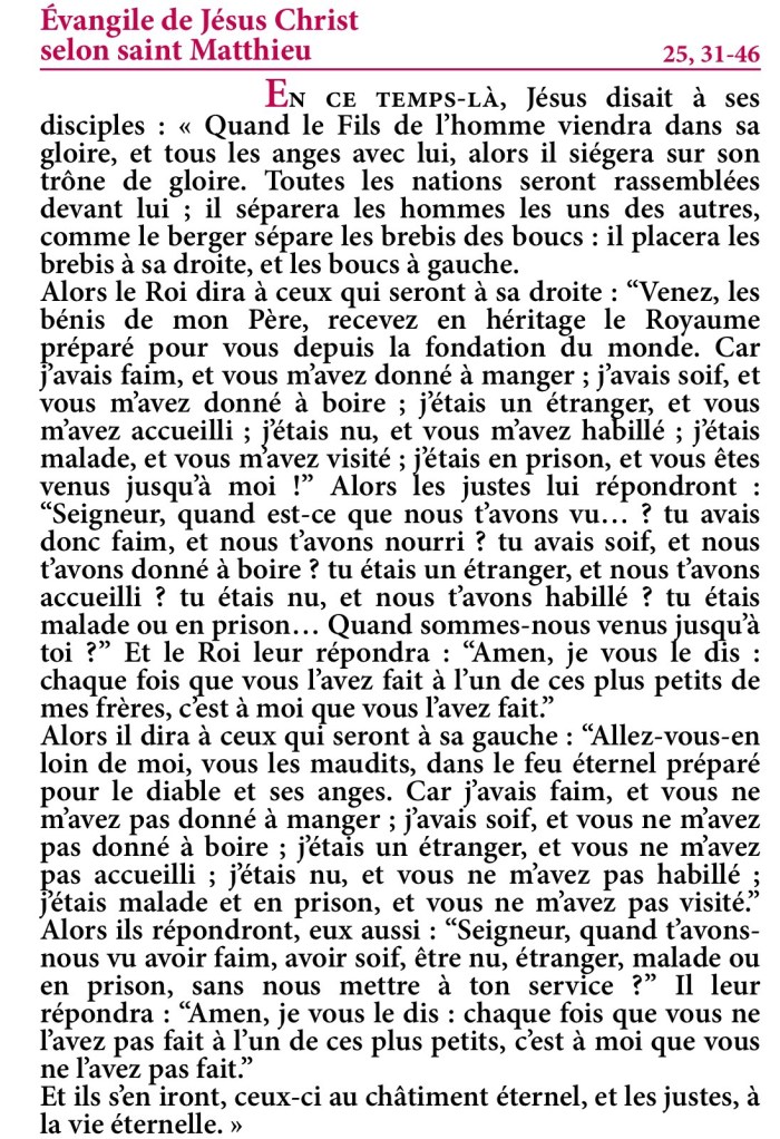 Évangile de Jésus-Christ selon saint Matthieu 25,31-46.