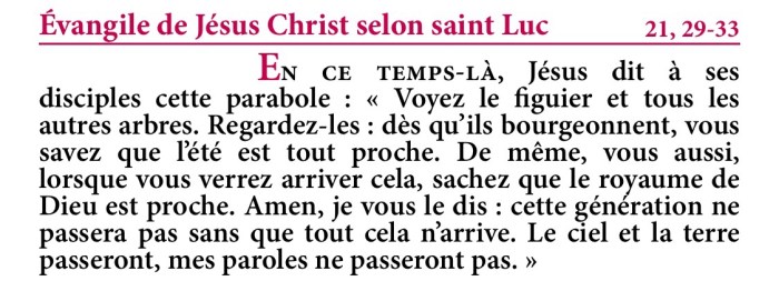 Évangile de Jésus-Christ selon saint Luc 21,29-33.