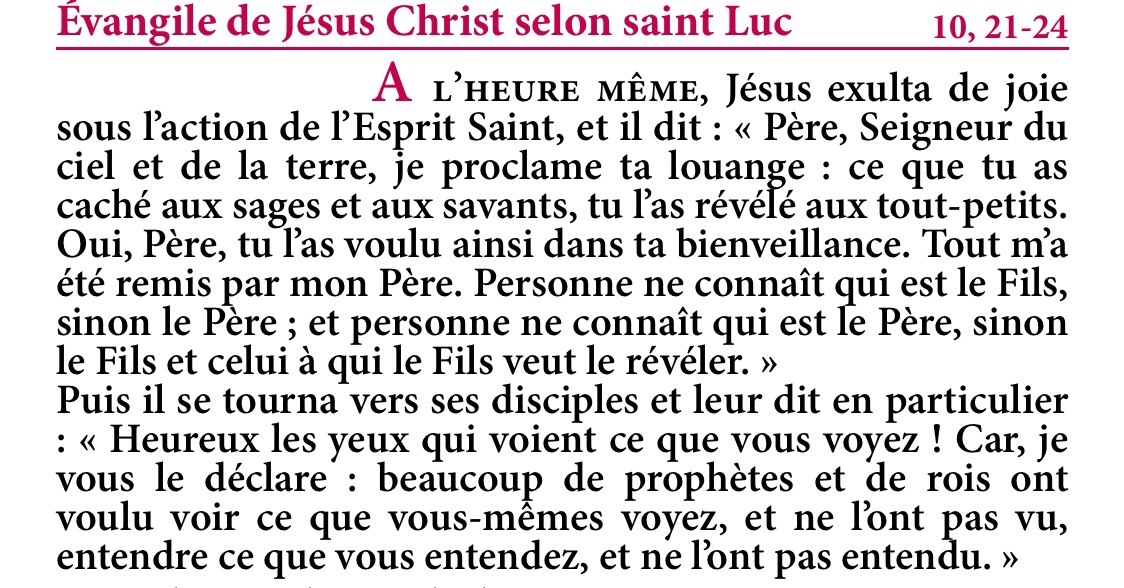 « ce que tu as caché aux sages et aux savants, tu l’as révélé aux tout-petits. » Lc 10