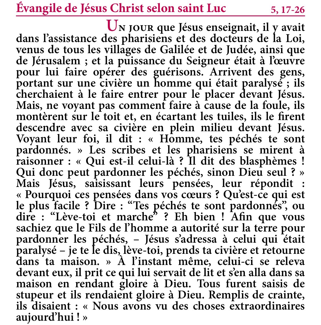 Évangile de Jésus-Christ selon saint Luc 5,17-26.