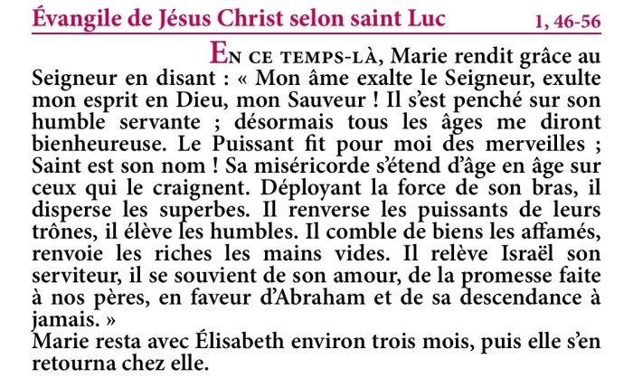 Évangile de Jésus-Christ selon saint Luc 1,46-56.