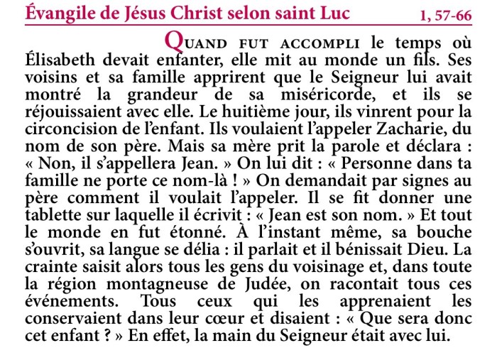 Évangile de Jésus-Christ selon saint Luc 1,57-66.