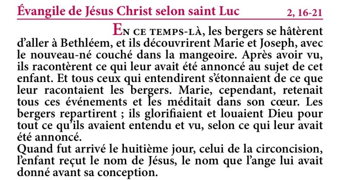 Evangile de la Solennité de Marie Mère de Dieu – Extrait de la Traduction Liturgique de la Bible – © AELF, Paris