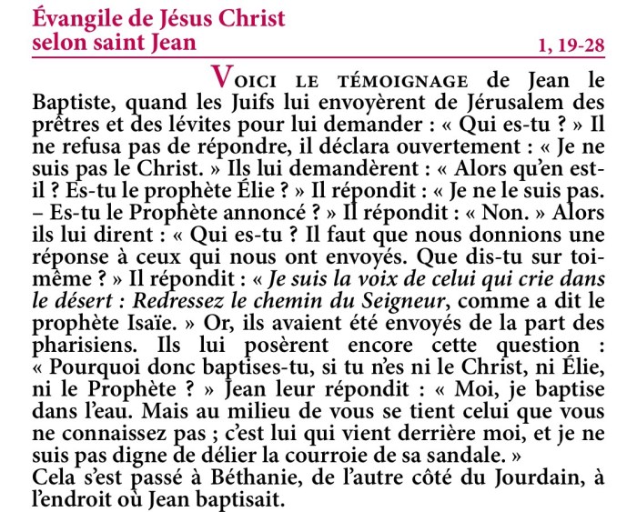 Évangile de Jésus-Christ selon saint Jean 1,19-28.