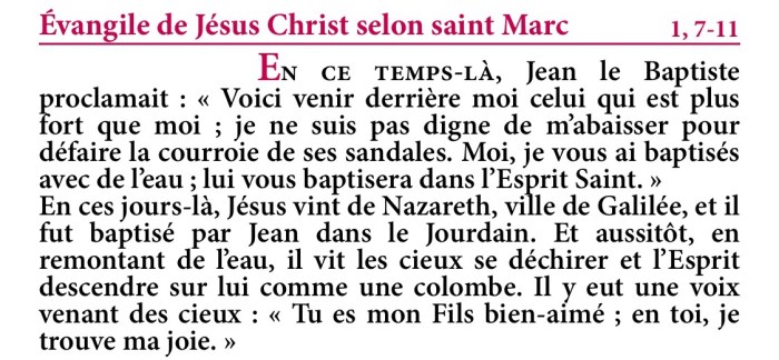 Evangile de la Fête du Baptême du Seigneur – Extrait de la Traduction Liturgique de la Bible – © AELF, Paris