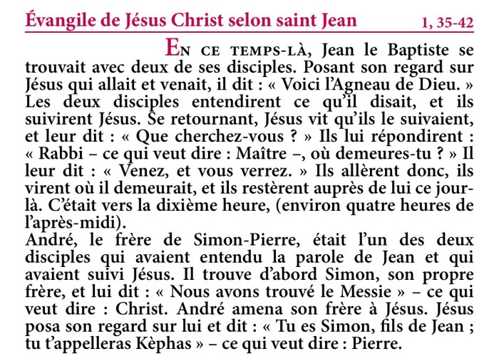 Évangile de Jésus-Christ selon saint Jean 1,35-42.