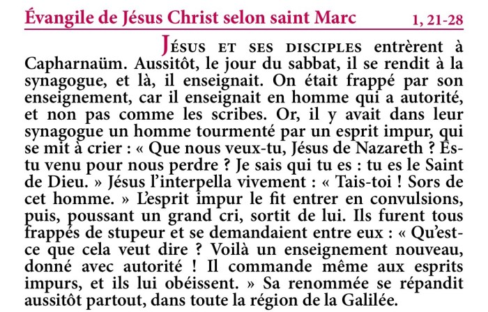 Évangile de Jésus-Christ selon saint Marc 1,21-28.