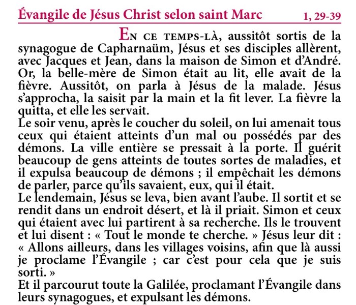 Évangile de Jésus-Christ selon saint Marc 1,29-39.