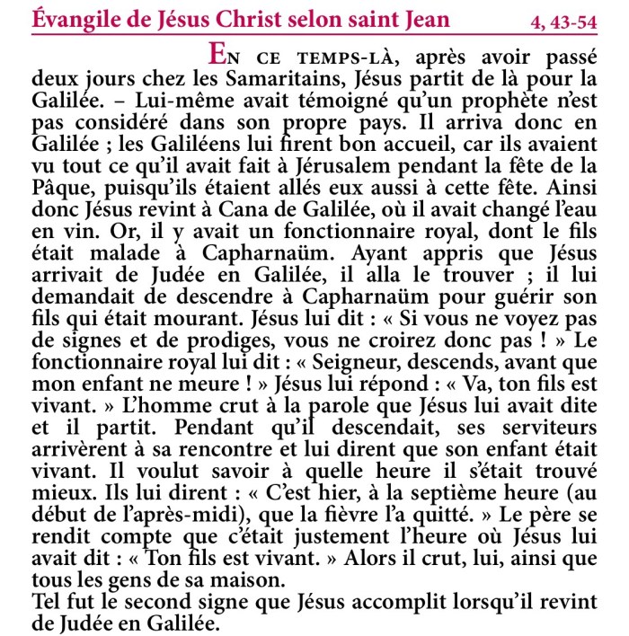 Évangile de Jésus-Christ selon saint Jean 4,43-54.