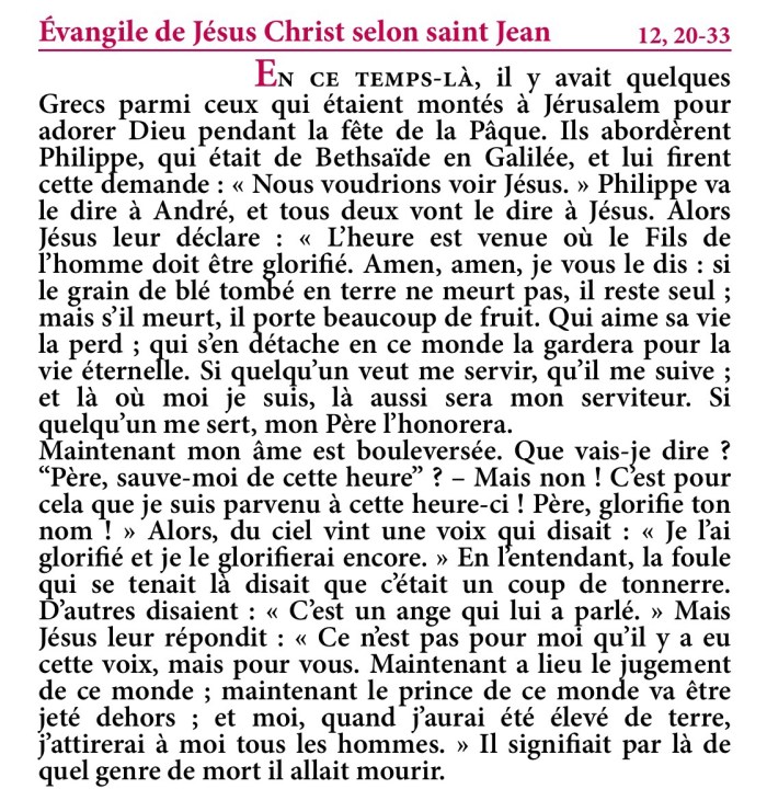 Évangile de Jésus-Christ selon saint Jean 12,20-33.