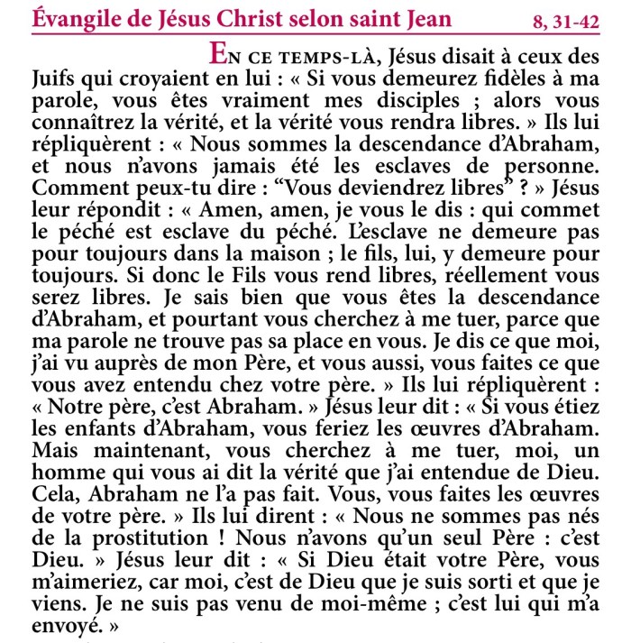 Évangile de Jésus-Christ selon saint Jean 8,31-42.