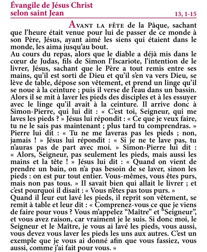 Evangile du Jeudi saint – Extrait de la Traduction Liturgique de la Bible – © AELF, Paris