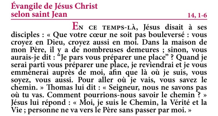 Évangile de Jésus-Christ selon saint Jean 14,1-6.