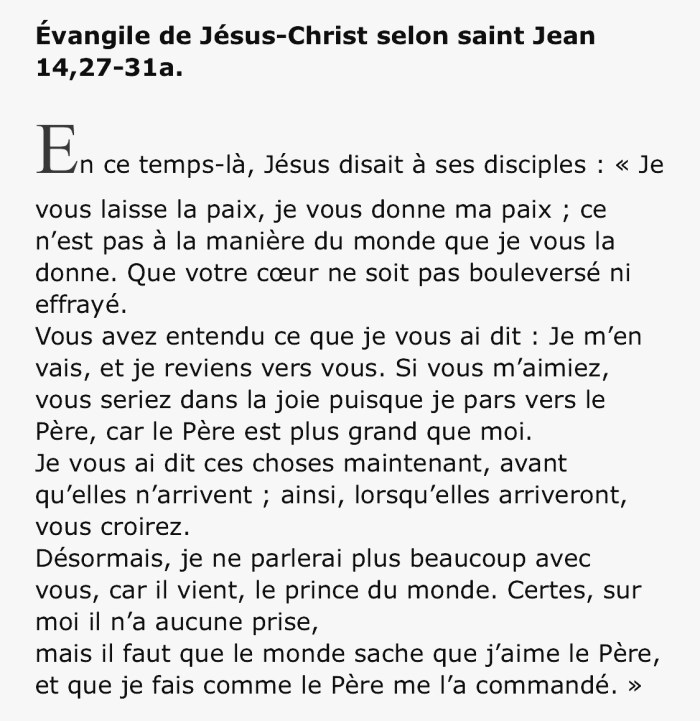Évangile de Jésus-Christ selon saint Jean 14,27-31a.
