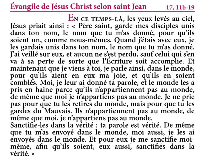Évangile de Jésus-Christ selon saint Jean 17,11b-19.