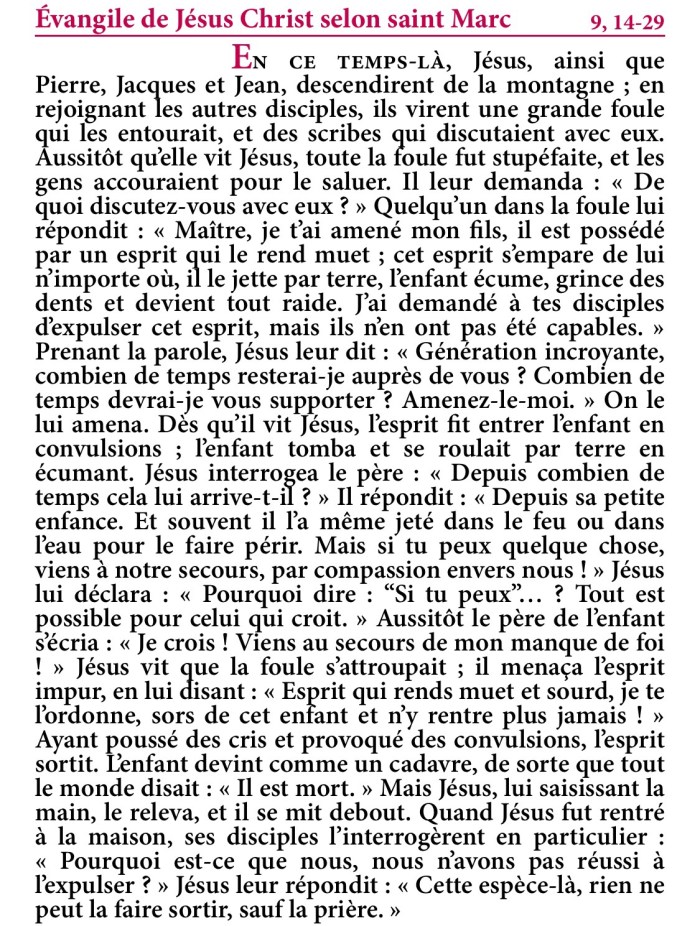 Évangile de Jésus-Christ selon saint Marc 9,14-29.