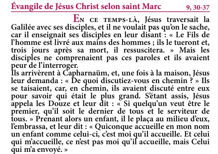 Évangile de Jésus-Christ selon saint Marc 9,30-37.