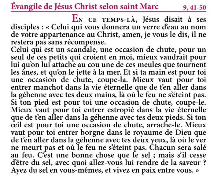 Évangile de Jésus-Christ selon saint Marc 9,41-50.