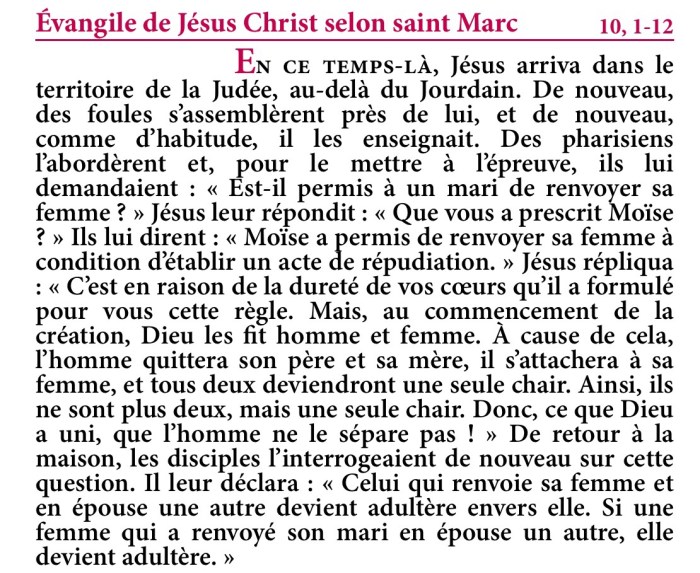 Évangile de Jésus-Christ selon saint Marc 10,1-12.