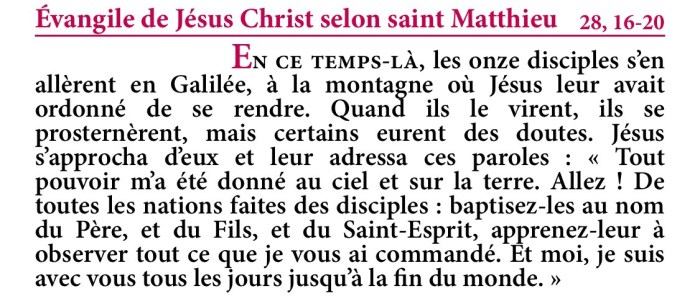 Évangile de Jésus-Christ selon saint Matthieu 28,16-20.
