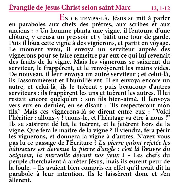 Évangile de Jésus-Christ selon saint Marc 12,1-12.