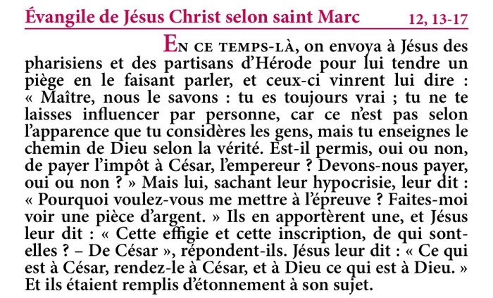 Évangile de Jésus-Christ selon saint Marc 12,13-17.
