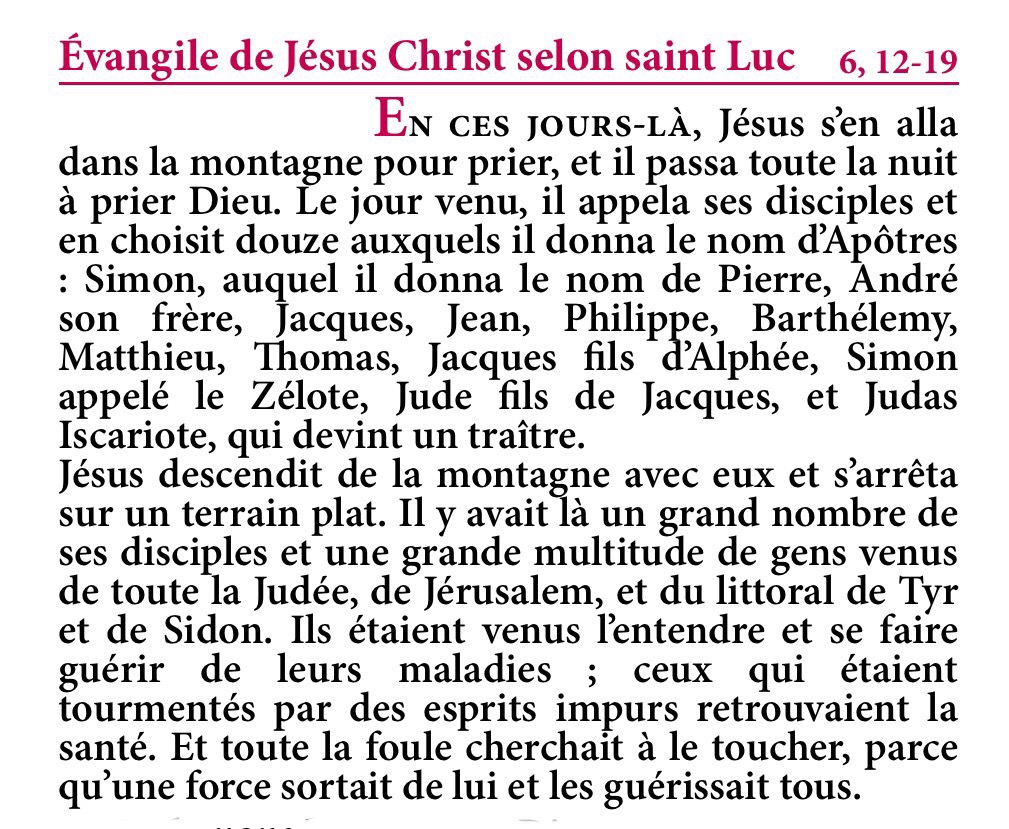 Évangile de Jésus-Christ selon saint Luc 6,12-19.