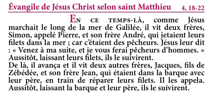 Évangile de Jésus-Christ selon saint Matthieu 4,18-22.