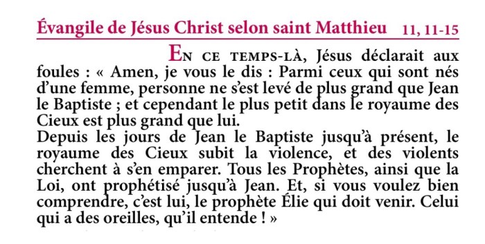 Évangile de Jésus-Christ selon saint Matthieu 11,11-15.