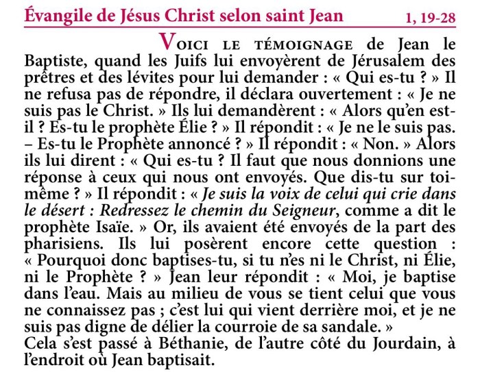 Évangile de Jésus-Christ selon saint Jean 1,19-28.