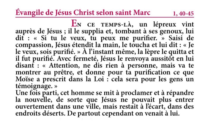 Évangile de Jésus-Christ selon saint Marc 1,40-45.