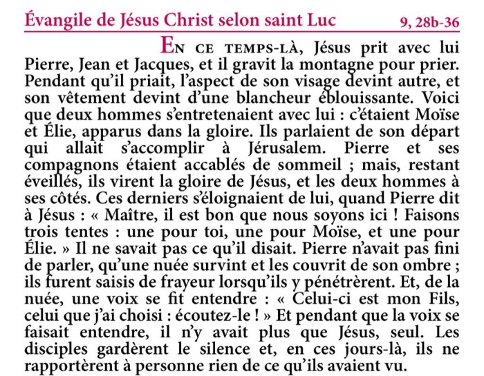 Evangile du Dimanche de la 2ème semaine de Carême – Extrait de la Traduction Liturgique de la Bible – © AELF, Paris