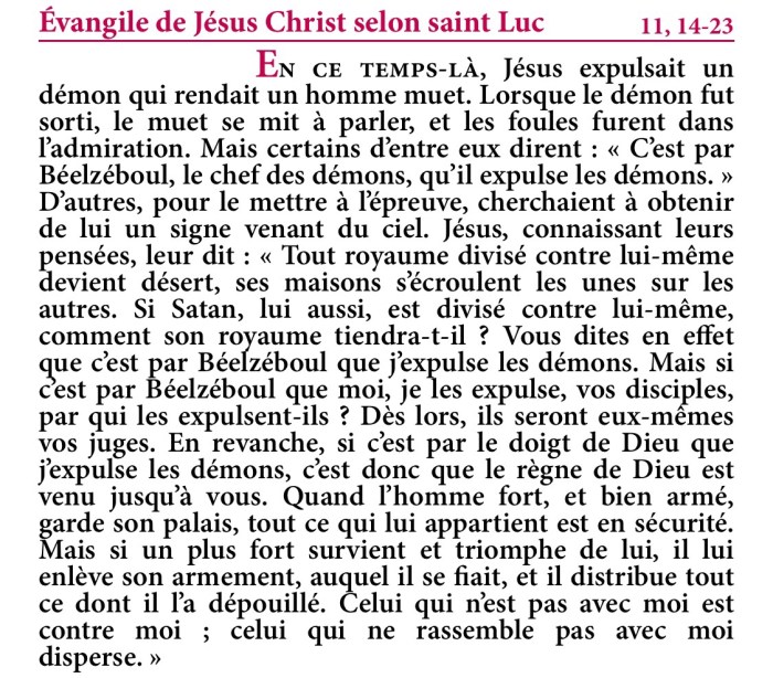 Évangile de Jésus-Christ selon saint Luc 11,14-23.