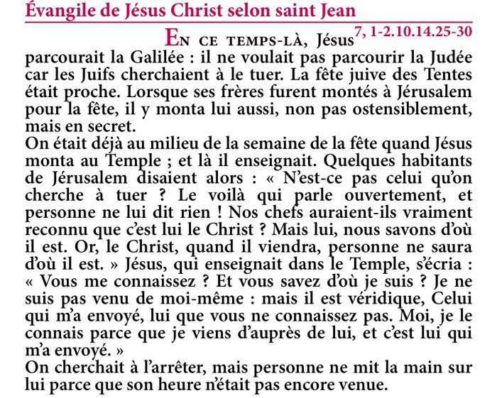 Évangile de Jésus-Christ selon saint Jean 7,1-2.10.14.25-30.