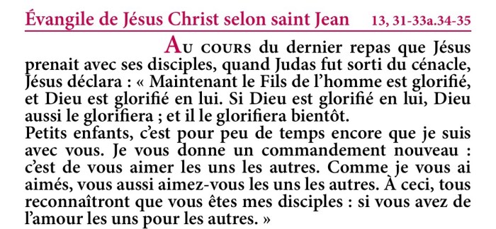 Évangile de Jésus-Christ selon saint Jean 13,31-33a.34-35.