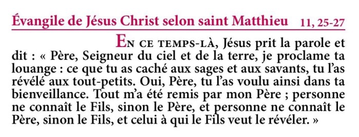 Évangile de Jésus-Christ selon saint Matthieu 11,25-27.