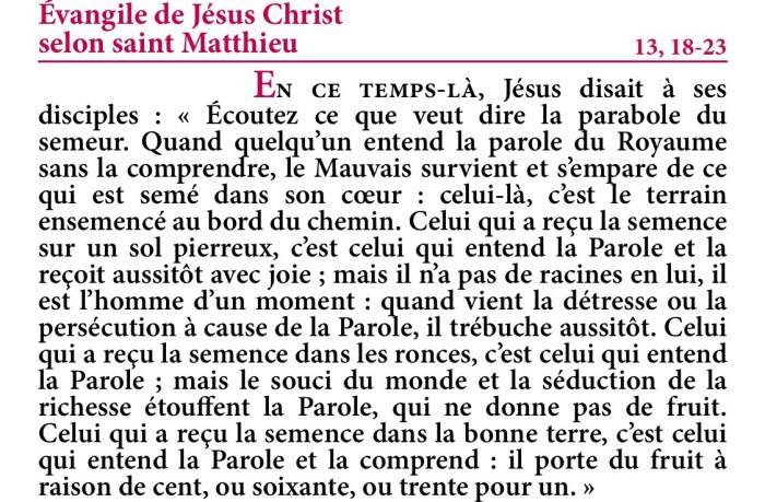 Évangile de Jésus-Christ selon saint Matthieu 13,18-23.
