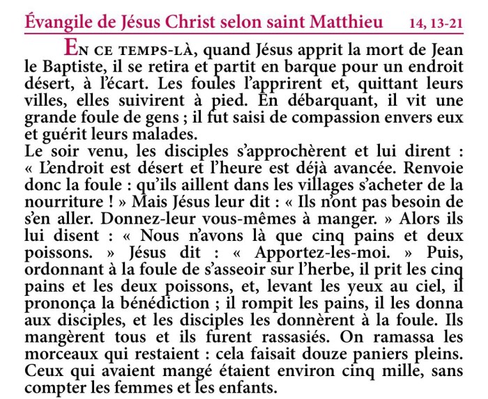 Évangile de Jésus-Christ selon saint Matthieu 14,13-21.