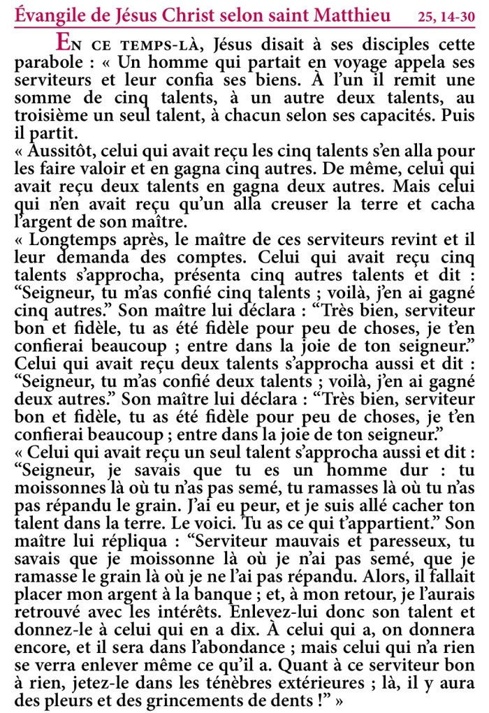 Évangile de Jésus-Christ selon saint Matthieu 25,14-30.