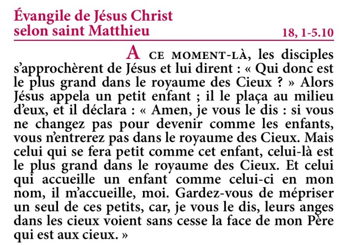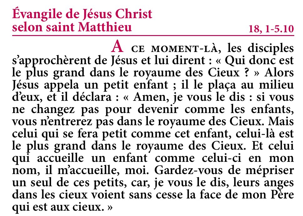 Évangile de Jésus-Christ selon saint Matthieu 18,1-5.10.