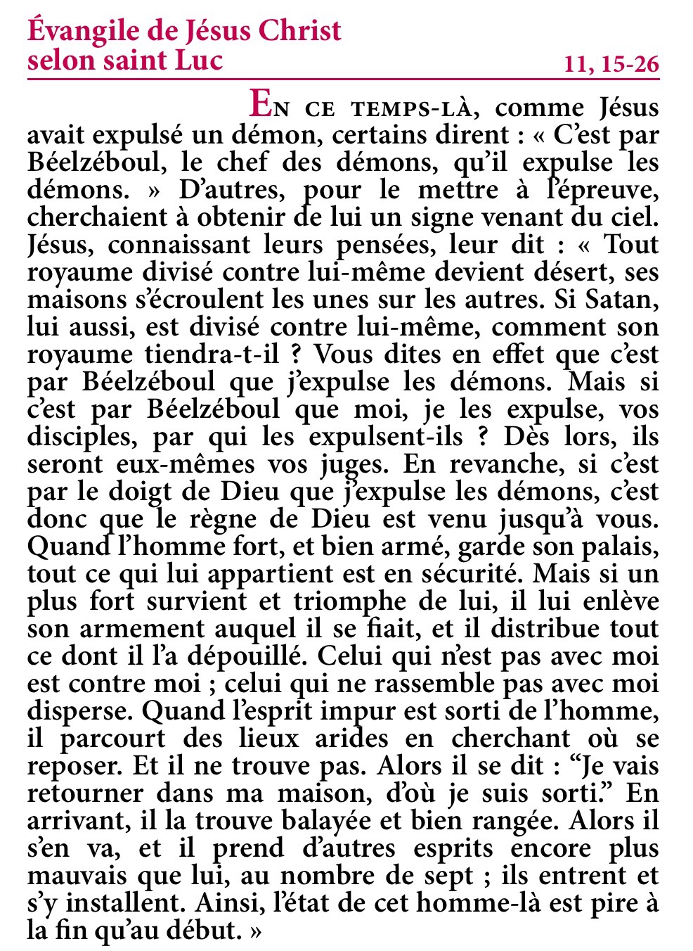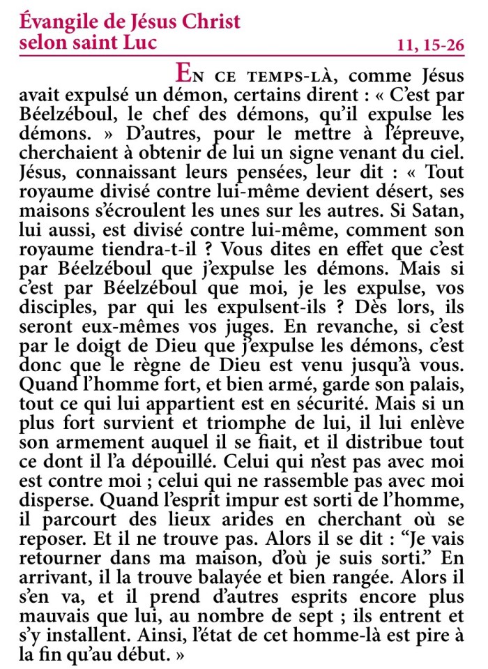 Évangile de Jésus-Christ selon saint Luc 11,15-26.