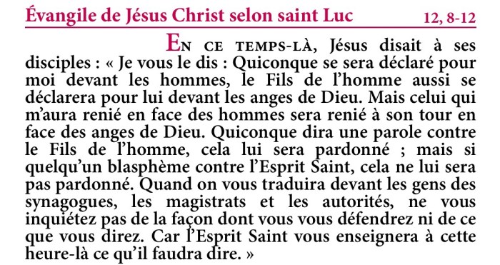 Évangile de Jésus-Christ selon saint Luc 12, 8-12.