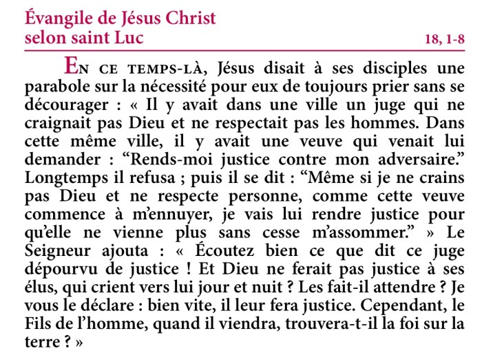Évangile de Jésus-Christ selon saint Luc 18,1-8.